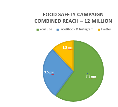 WHO India’s initiated a digital campaign on food safety in June 2022 to create public awareness amongst the public as well as food business on reducing the burden of foodborne diseases. The combined reach of the campaign on YouTube, Facebook, Instagram and Twitter was over 12 mn (1.2 crores) as of June 2022. The campaigns messages reached out to — 7.5 mn people on YouTube, 3.5 mn on Facebook and 1.5 on Twitter.