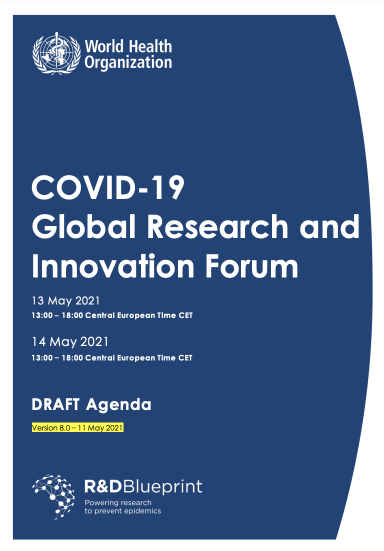 COVID-19 Global Research & Innovation Forum: Meeting Information (13-14 May 2021 – 13:00 to 18:00. Open participation and live streaming)